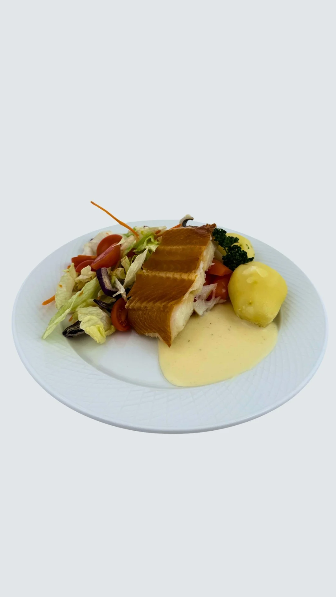Røykt blåkveite med poteter og kvit saus